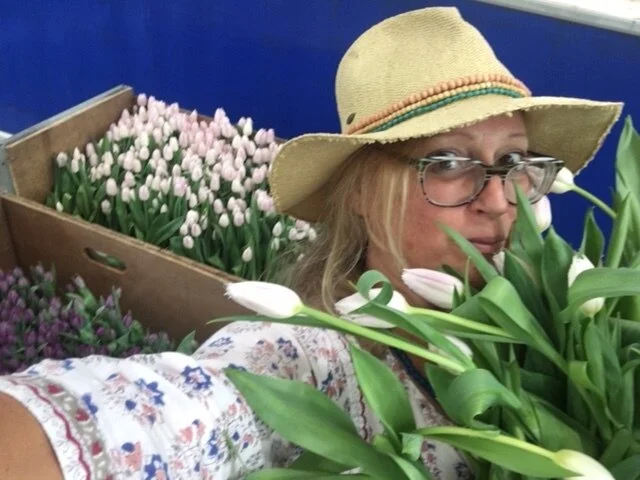 I work with these farms to bring their blooms to customers in the DC area, such as M & M Plants, where Mark and Madgie McGaughan taught me the nitty gritty dirty fun of flower farming and Suzanne Montie of Red Chimney Flower Farm, who generously lends me space to grow my own flowers.